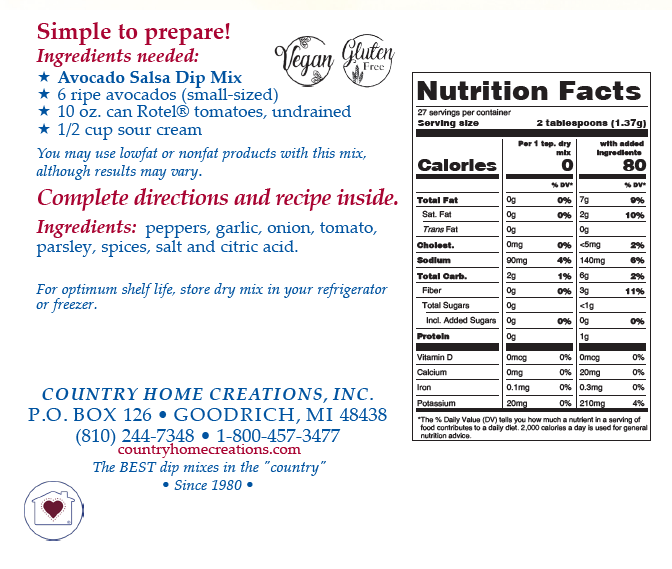 Craving a flavor explosion? Our Avocado Salsa Mix is the ultimate flavor fusion, blending the creaminess of avocado with the zesty kick of salsa. Enjoy it as a dip, topping, or straight off the spoon - this versatile salsa elevates any snacking experience. No dairy products required to complete this mix.