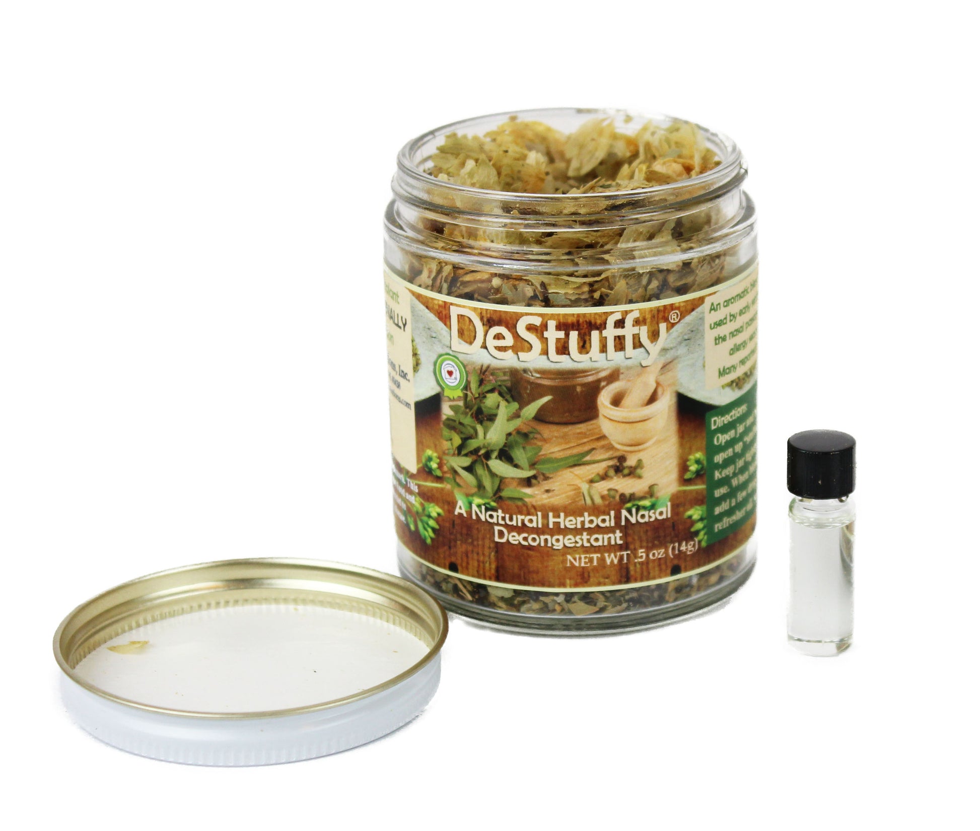 An all natural herbal decongestant. Use it during the hay fever/allergy and cold seasons to unstuff your nose! Comes complete with refresher oil. This item is a non-edible herbal scent jar.