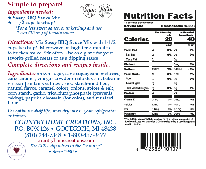 Meet the best sweet BBQ sauce in the country. Mix with ketchup for a sweet sauce or use tomato sauce for a less sweet version. Turn up the heat to your liking by adding your favorite hot sauce. Sassy BBQ Sauce Mix is delicious with: